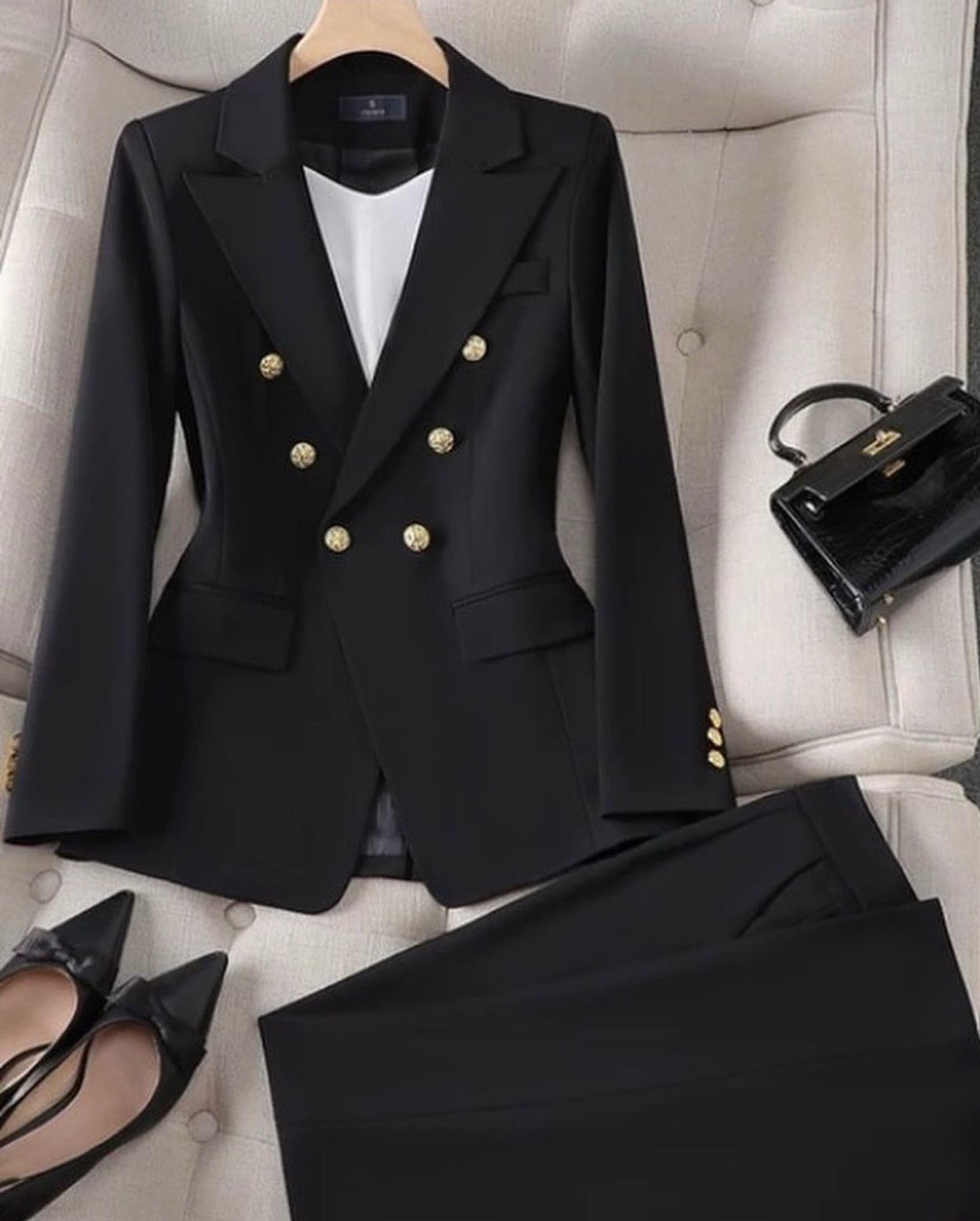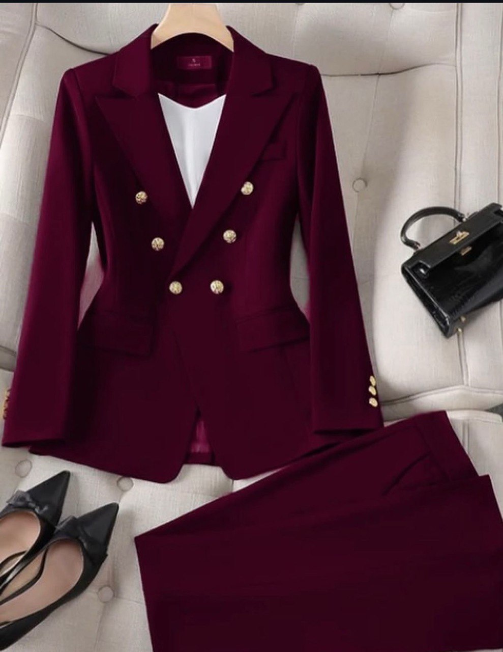 • Caractéristiques : double boutonnage, moulante, couleur unie, confortable